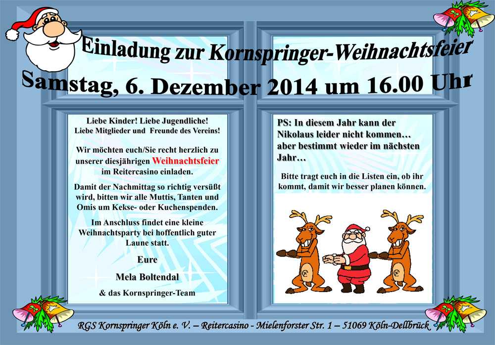 Einladung zur Kornspringer-Weihnachtsfeier am 06.12.14